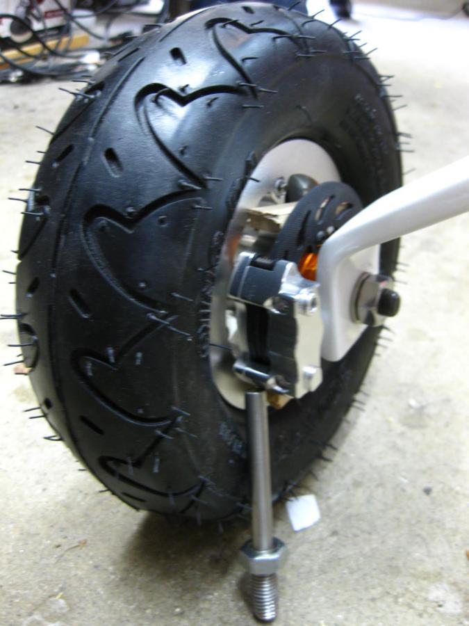 Found some Off-Road Skateboard wheels on Ebay with three center attachment bolts and thought they might be good to attach the rotor assy.