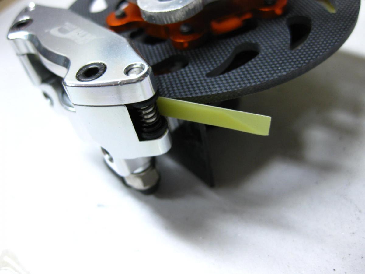 I sized the 12/10mm wheel axel spacer/standoff to get the brake rotor nut so it was somewhat in the center of the rotor contact area so it can float either way.