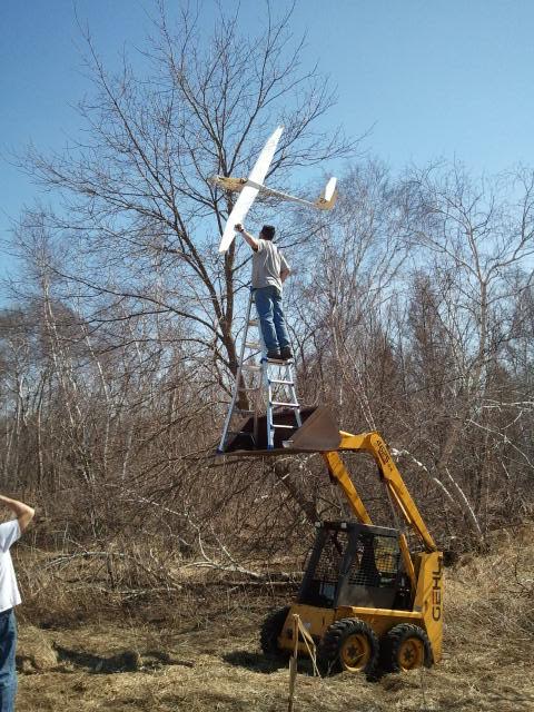 So, I was looking through some pictures on my computer and I saw this picture that I almost forgot about. Kevin and I were aerotowing at my place a couple of years ago when he "landed" his ASW27 in a tree. This was the only way that I could get high enough to retrieve it! As a side note, it just so happened that my wife won a competition at work a week later with this photo (held at a local pub) with her female co-workers. The theme? Who would likely be the first to be a widow. She won the competition hands down.