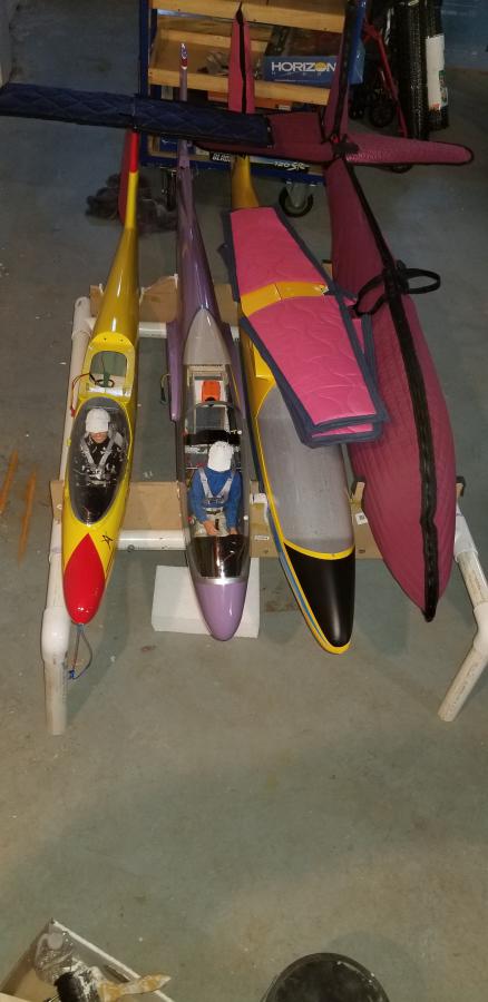 I want to build a free-standing rack for 1/3 scale gliders, large enough for three scale birds and a few 3-4m non-scale fuselages and wings. What have you got?